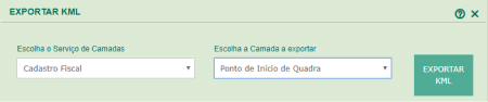 Possibilita que o usuário exporte uma camada de dados no formato kml. A funcionalidade exibe todos os serviços do Controle de camadas.