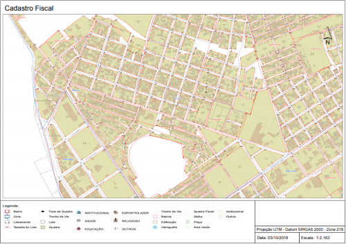 o O preenchimento da escala não precisa incluir a referência “1/”. Ou seja, para imprimir na escala 1/10000, deve-se inserir no campo Escala apenas “100000” (sem aspas). O sistema irá imprimir o mapa na escala de 1/100000;