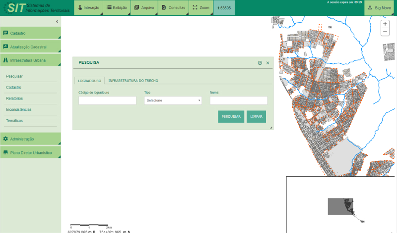 Figura 27: Janela Infraestrutura Urbana exibindo os menus e a Janela de Pesquisa